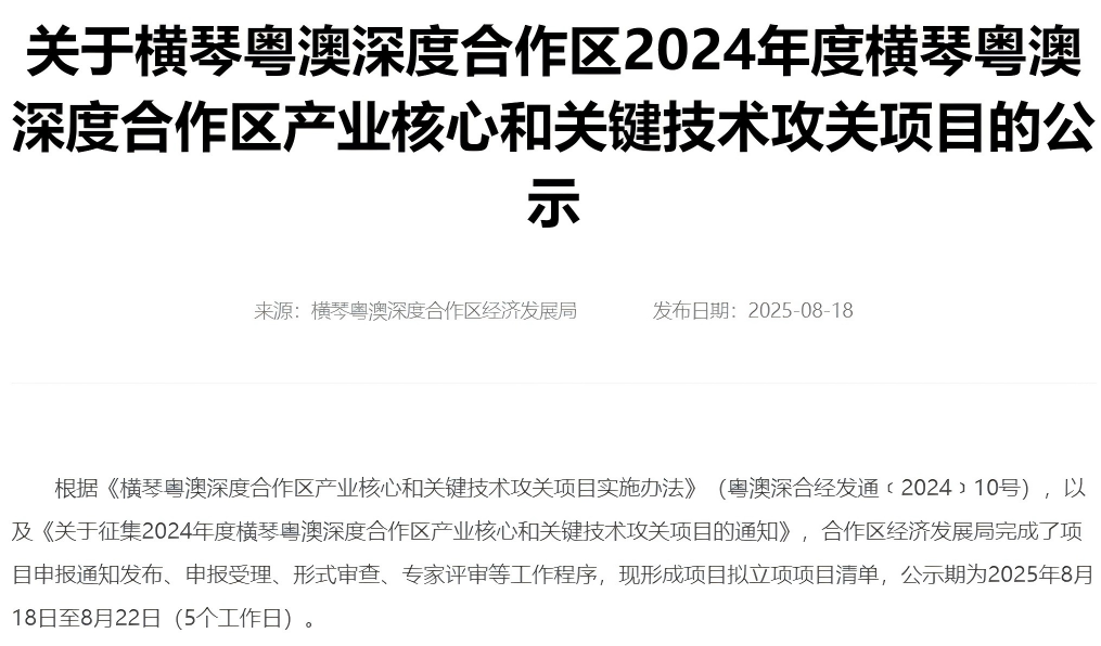 2022年度横琴粤澳深度合作区生物医药大健康标杆项目